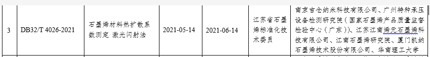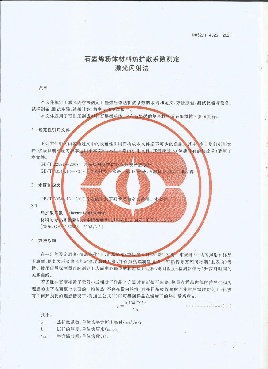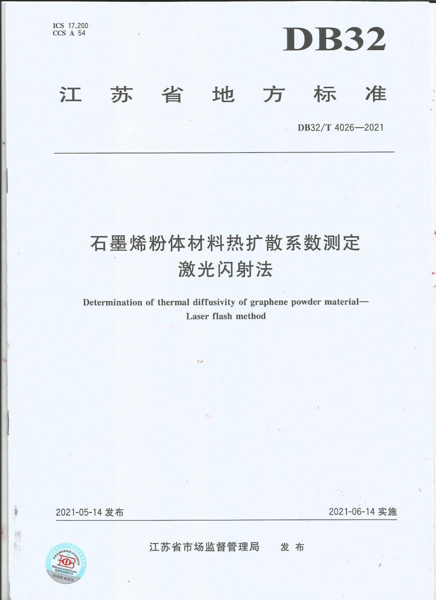 我司主導的江蘇省地方標準《4026-2021石墨烯材料熱擴散系數(shù)測定 激光閃射法》正式頒布