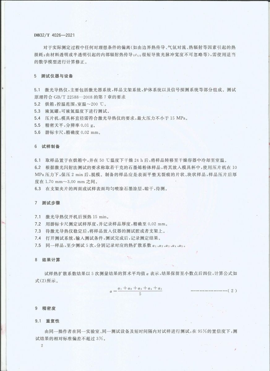 4026-2021石墨烯材料熱擴散系數(shù)測定 激光閃射法
