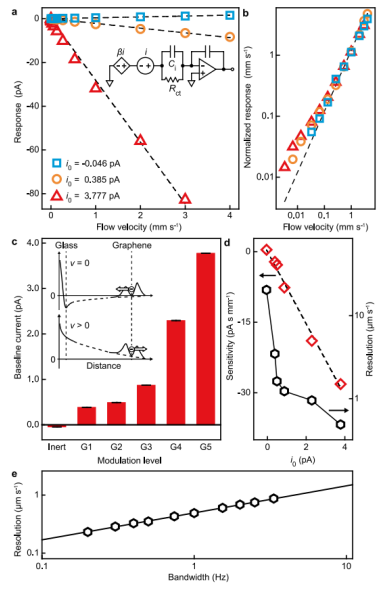 Fig. 1 通過使用石墨烯單微電極設(shè)備將血流速度轉(zhuǎn)換為電流。