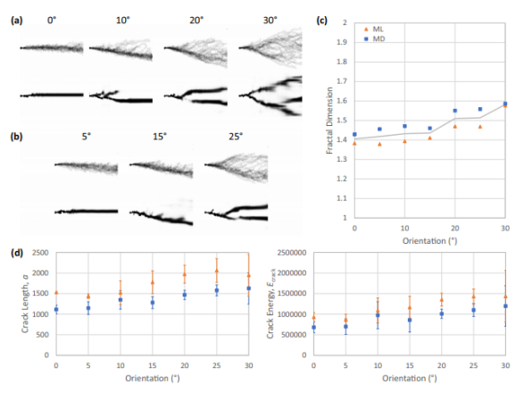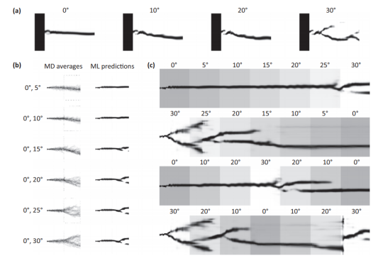 了解斷裂對(duì)于彈性納米材料的設(shè)計(jì)至關(guān)重要。分子動(dòng)力學(xué)提供了一種在原子水平上研究斷裂的方法,但是由于可擴(kuò)展性的限制,計(jì)算量很大。在這項(xiàng)工作中,作者建立了預(yù)測(cè)納米斷裂機(jī)制的機(jī)器學(xué)習(xí)方法,包括裂紋不穩(wěn)定性和作為晶體取向函數(shù)的分支。將重點(diǎn)放在與技術(shù)相關(guān)的特定材料系統(tǒng)石墨烯上,并將深度學(xué)習(xí)方法應(yīng)用于此類(lèi)納米材料的研究,并探索將機(jī)器學(xué)習(xí)預(yù)測(cè)校準(zhǔn)為有意義的結(jié)果所必需的參數(shù)空間。該結(jié)果驗(yàn)證了深度學(xué)習(xí)方法能夠定量捕獲石墨烯斷裂行為(包括其分形維數(shù)與晶體取向的函數(shù))的能力,并為深度學(xué)習(xí)在材料設(shè)計(jì)中的廣泛應(yīng)用提供了希望,從而為其他2D材料打開(kāi)了潛力。