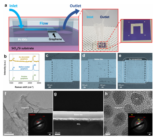 Fig. 2 純,Nafion涂層和Au裝飾的石墨烯的實驗裝置和表征。