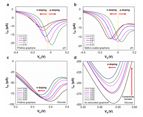 Fig. 4 石墨烯SFET的葡萄糖檢測特性。