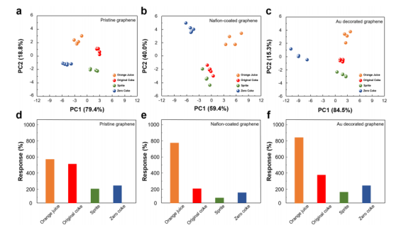 Fig. 7 PCA對三種類型的SFETs的真實飲料的響應。