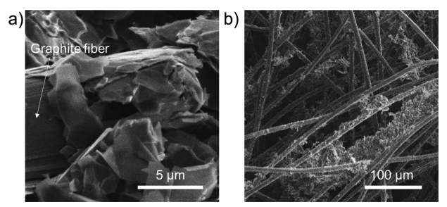 Figure 5. GF/石墨烯電極的形態(tài)分析。(a, b) 石墨烯-O