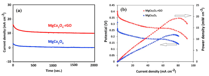 -2)相比,基于MgCo2O4-rGO的陽極的單電池功率密度(19 mW cm