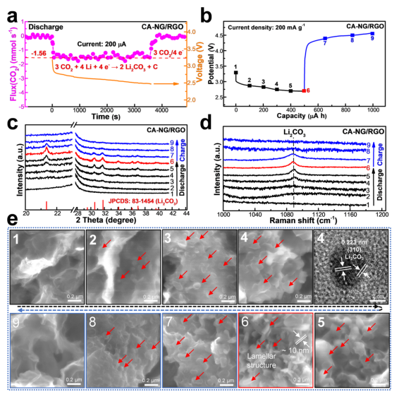 Figure 4. Li-CO2電池中CA-NG/RGO正極的電化學(xué)反應(yīng)機(jī)理。
