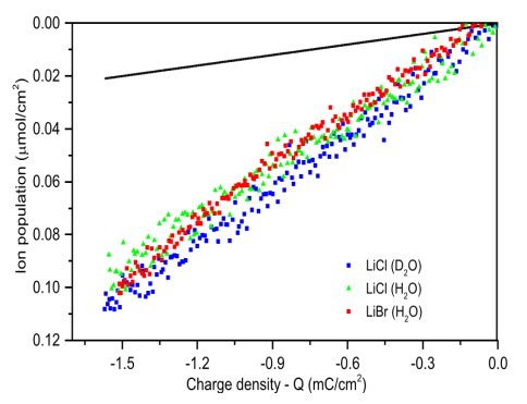2O)的電荷密度函數(shù)的離子群變化。從法拉第公式計算的離子數(shù)量變化由黑色實線表示。