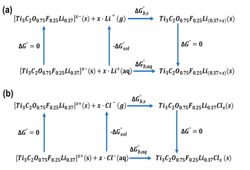 -離子在MXene片層中的嵌入自由能的熱力學(xué)循環(huán)。