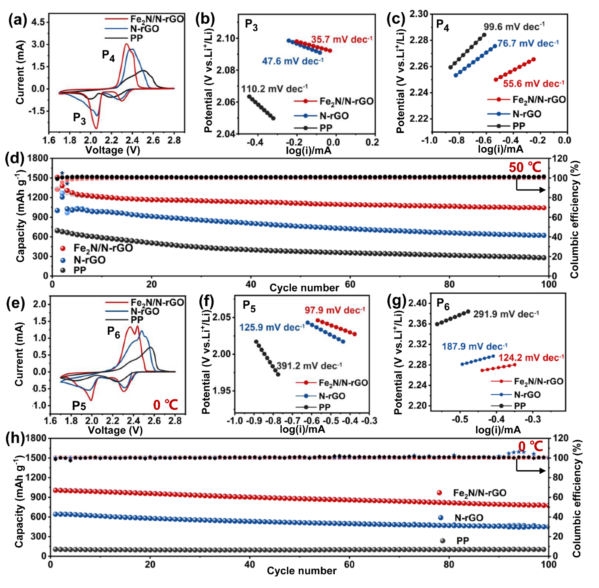 2N在低溫下仍有加速反應(yīng)動(dòng)力學(xué),在高溫下仍有抑制多硫化物穿梭的作用。因此,含F(xiàn)e