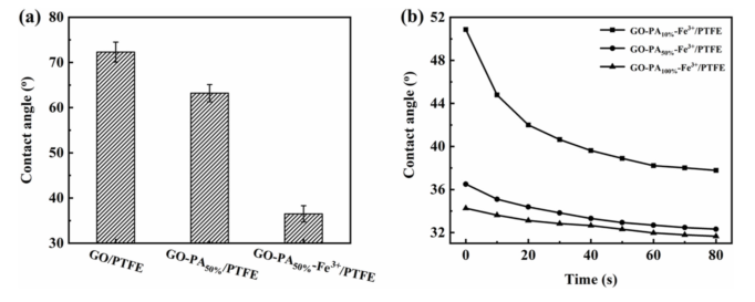 3+/PTFE膜的靜態(tài)水接觸角;(b) GO-PA