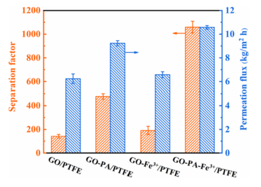 3+-植酸(PA)配合物作為插層劑和表面改性劑制備親水性氧化石墨烯膜。在90 wt%正丁醇/水混合物中,F(xiàn)e