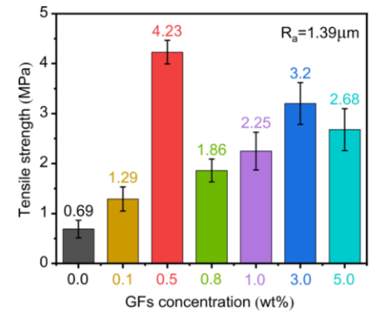 圖4. 與GFs濃度相關(guān)的搭接剪切強(qiáng)度。
