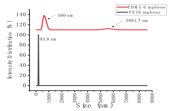 圖10. a)PDMS/石墨烯和b),PEI聚合物組裝納米顆粒和石墨烯的粒徑分析。