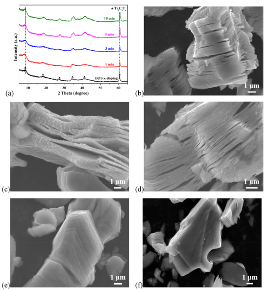 x MXene和n摻雜產(chǎn)物的XRD結(jié)果。(b) Ti