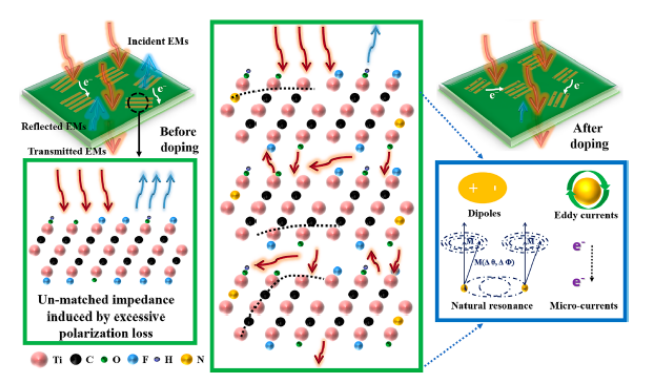 x MXene和氮摻雜產(chǎn)物的微波吸收機理的示意圖。