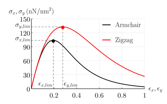 圖7. 扶手椅形和鋸齒形單軸載荷作用下石墨烯的平衡路徑。