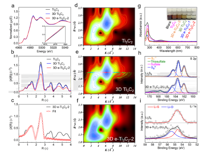 6溶液的紫外可見光譜和光學(xué)圖像(插圖)。(h)添加和不添加3D e-Ti