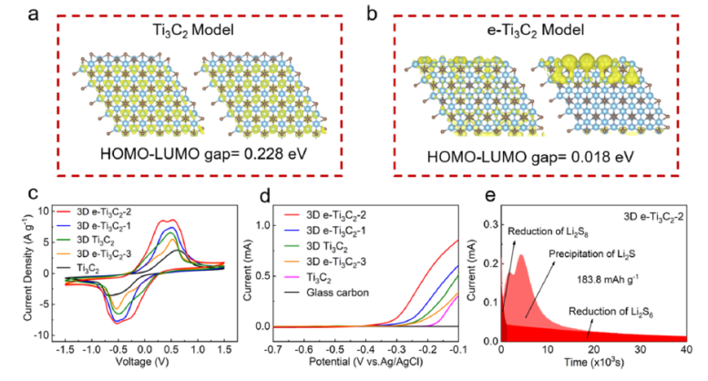 鋰硫電池因其理論能量密度高、成本低、生態(tài)友好等優(yōu)點(diǎn),在下一代電子產(chǎn)品領(lǐng)域具有廣闊的前景。然而,鋰硫電池的實(shí)際應(yīng)用受到多硫化物穿梭效應(yīng)和反應(yīng)動(dòng)力學(xué)遲緩的阻礙。采用噴霧干燥和化學(xué)蝕刻工藝制備了多級(jí)多孔MXene微球作為多功能硫電催化劑。相互連接的骨架提供了均勻的硫分布,防止了MXene薄片的重新堆積,而豐富的邊緣使類似納米片的Ti