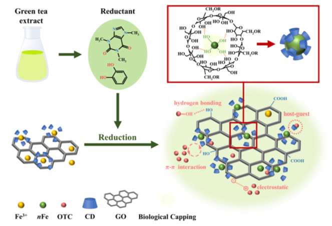 圖7 環(huán)糊精存在下綠茶生成GO@Fe NPs機(jī)制的示意圖。