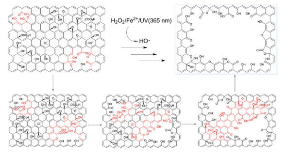 2+ 體系產(chǎn)生羥基自由基,用于oxo-G 基面內(nèi)刻蝕孔,濕化學過程制備p-oxo-G樣品的原理示意圖。