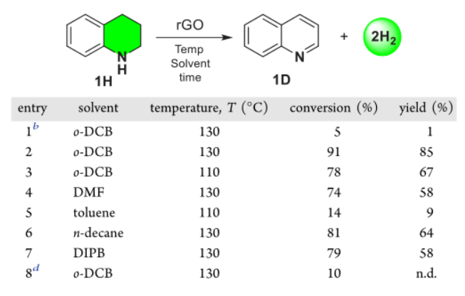 圖 2. 不同反應(yīng)條件下rGO對(duì)1,2,3,4-四氫喹啉(1H)ADH的催化活性。
