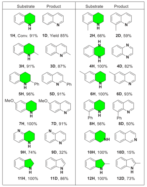 圖 1. N-雜環(huán)的氧化脫氫和無受體脫氫之間的差異。后者對(duì)于H