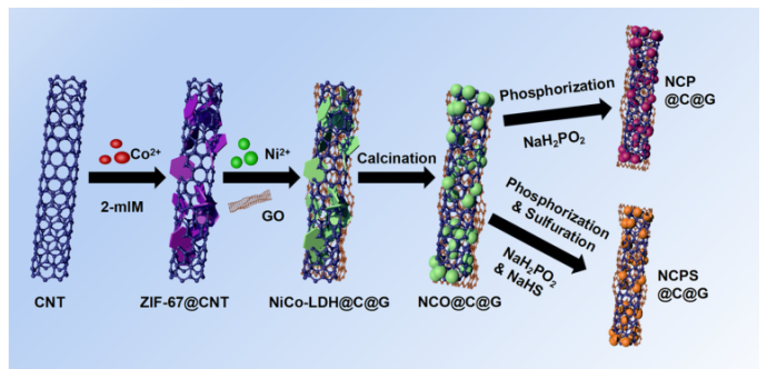 圖 1. NCP@C@G 和 NCPS@C@G 的制造過程示意圖。