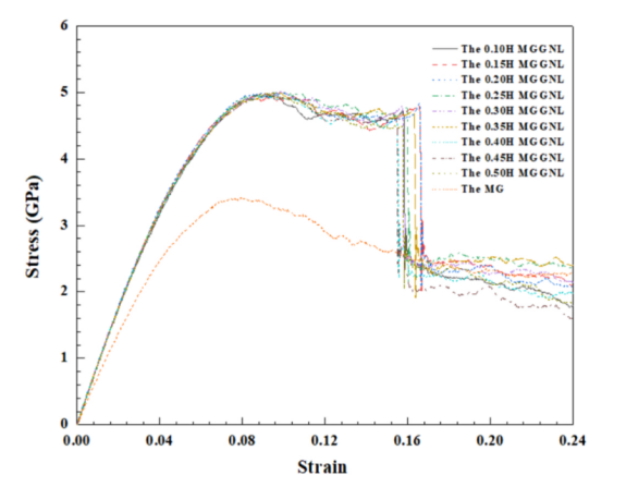 圖2. MGGNLs 和 MG的應力-應變曲線。