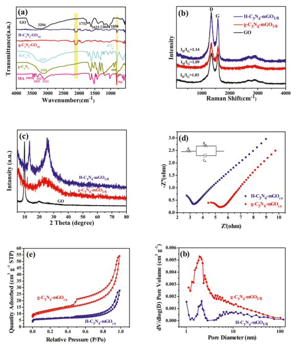 1/8樣品的(e)氮吸附/脫附等溫線和(f)孔徑分布。