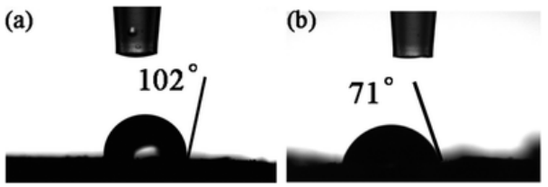 Figure 8. (a) rGO氣凝膠和 (b) MGA6 的水接觸角