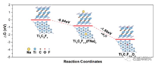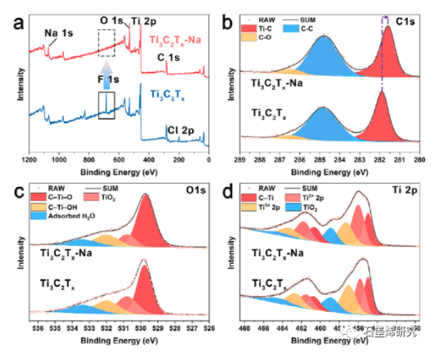 x上幾乎所有的F端基都可以在高溫下與Na金屬反應(yīng)消除,并且在后續(xù)的洗滌步驟中引入了大量的O端基。綜合表征分析和密度泛函理論(DFT)計算,闡明了其作用機理。此外,優(yōu)化后的Ti