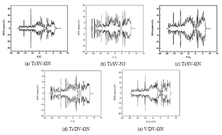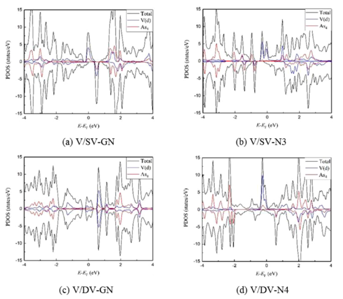 圖11. 四種不同V/GS吸附體系的PDOS吸附曲線。