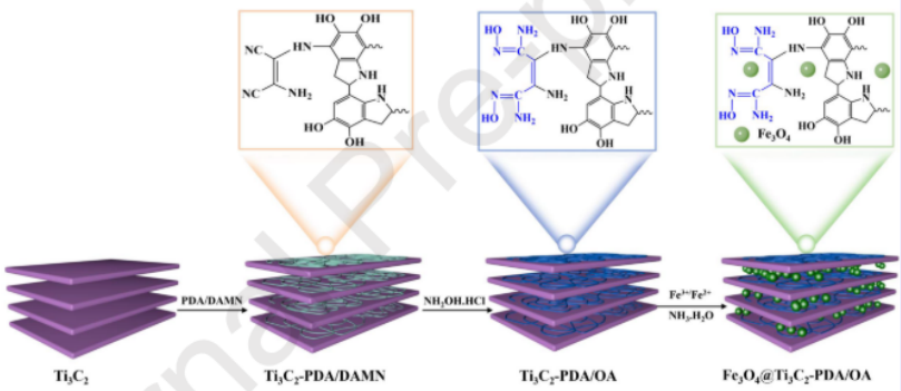 2的片層間距內(nèi),構(gòu)建了一種新型磁性MXenes基復(fù)合材料(Fe