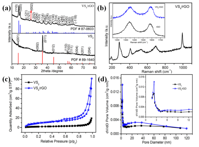 4。采用掃描電子顯微鏡(SEM)、透射電子顯微鏡(TEM)、X-射線衍射(XRD)、拉曼光譜、BET比表面積法(BET)、X-射線光電子能譜(XPS)和電化學(xué)方法對催化劑的結(jié)構(gòu)、形貌、組成和催化活性進行了檢測。結(jié)果表明,在催化過程中,VS