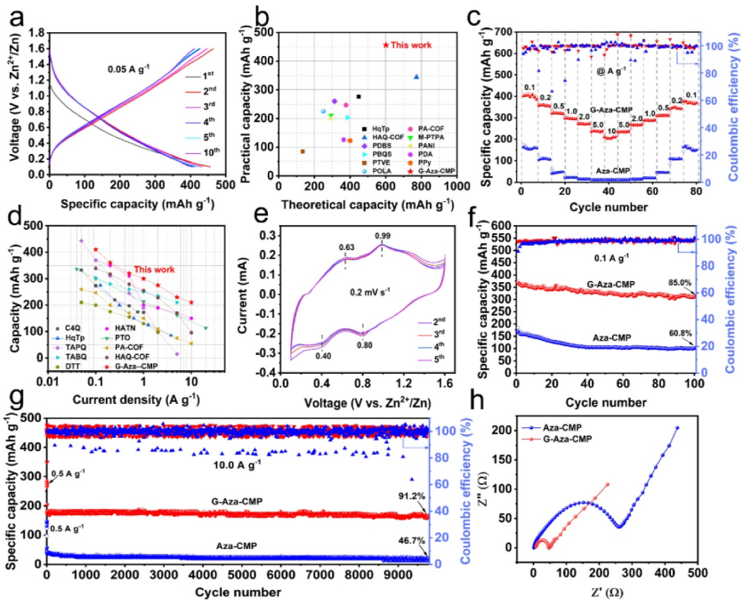 -1 ) 用于 AZIBs。石墨烯的引入使Aza-CMP暴露出更多的活性位點(diǎn)與H