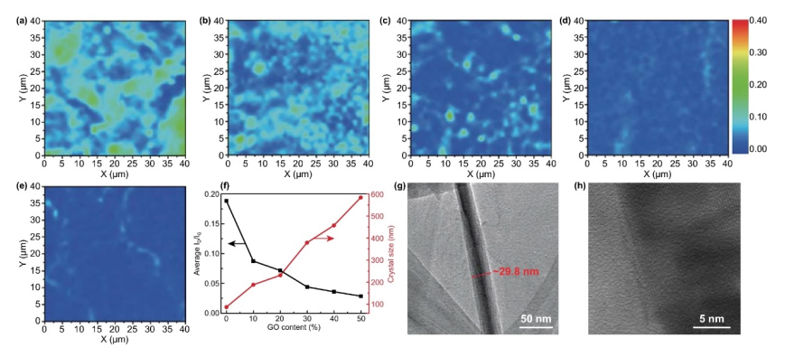 I G值和晶體尺寸與 PAAS/GO 懸浮液中 GO 含量的關(guān)系圖。G