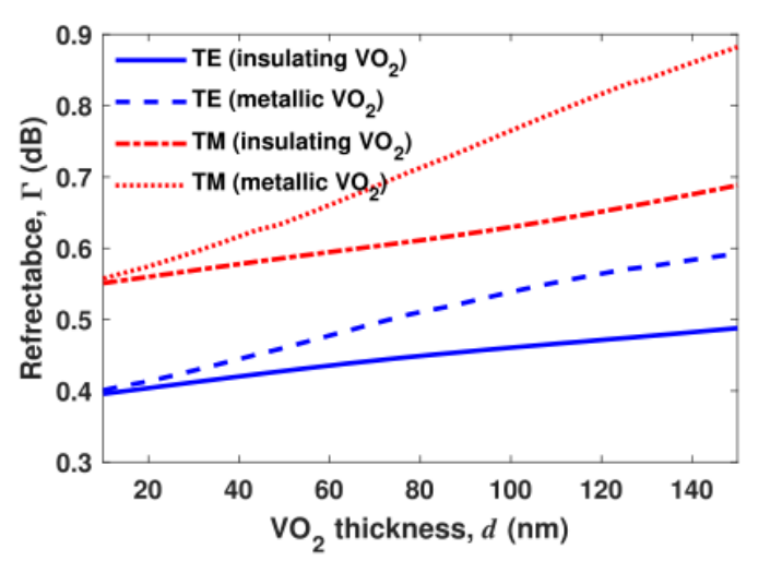 圖 3. 界面處的 TE 和 TM 反射率作為 VO