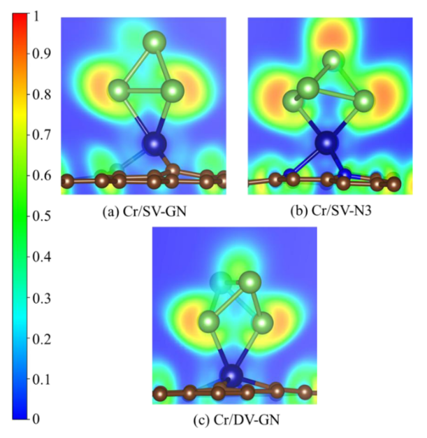 圖16. 三種不同的Cr / GS吸附系統(tǒng)的電子局域函數(shù)。