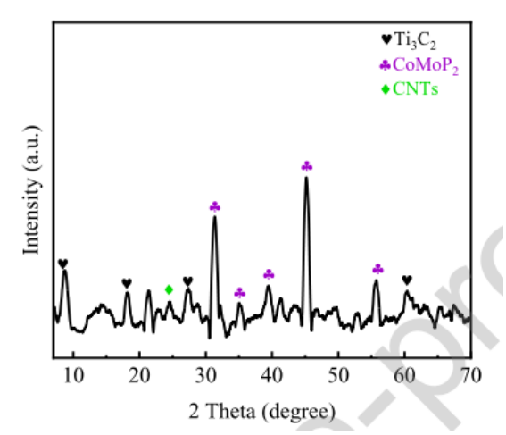 圖3. CoMoP2@Mxene@CNTs-3樣品的XRD譜圖。