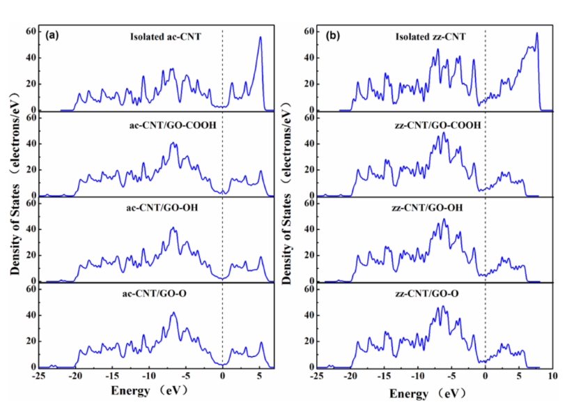 圖7. CNT與GO交互前后的DOS。