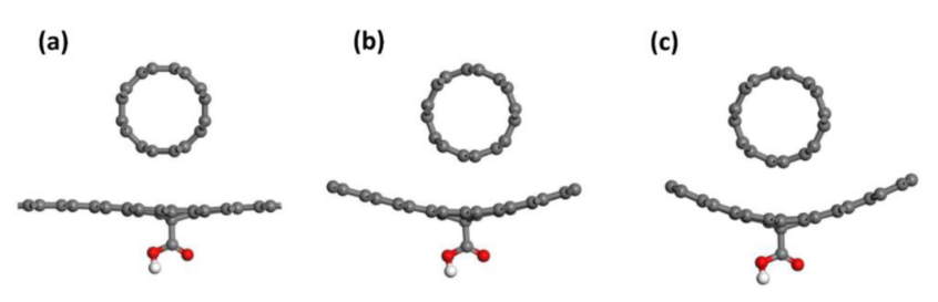 圖6. 具有不同官能團(tuán)的初始偽AB-型堆積結(jié)構(gòu)。(a) ac-CNT/GO-COOH, (b) ac-CNT/GO-OH, (c) ac-CNT/GO-O 。