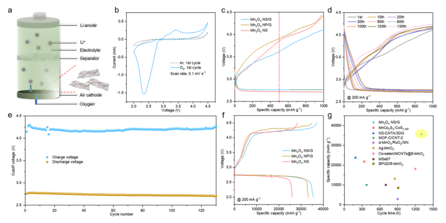 4NS/G 基鋰氧電池示意圖。(b) Mn