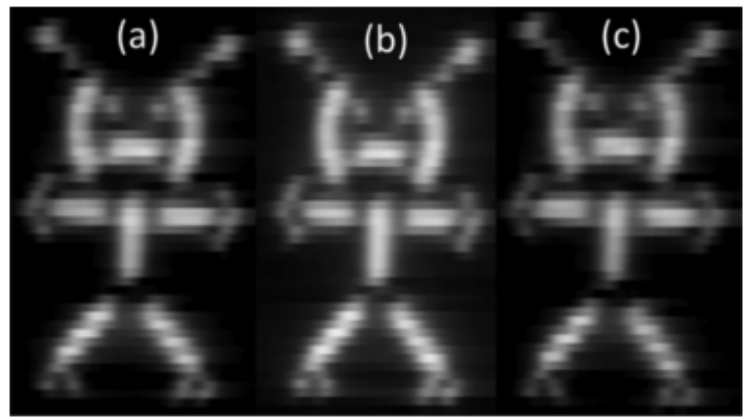 圖7.在 PET 上分別以(a)400,(b)500和(c)1000nm 的波長(zhǎng)用9通道 PbS QD/石墨烯混合傳感器陣列拍攝的圖像。
