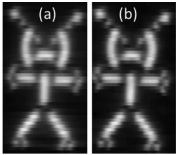 圖8.在 PET 上用9通道 PbS QD/石墨烯混合傳感器陣列拍攝的圖像,陣列(a)平坦,(b)彎曲半徑為5厘米。