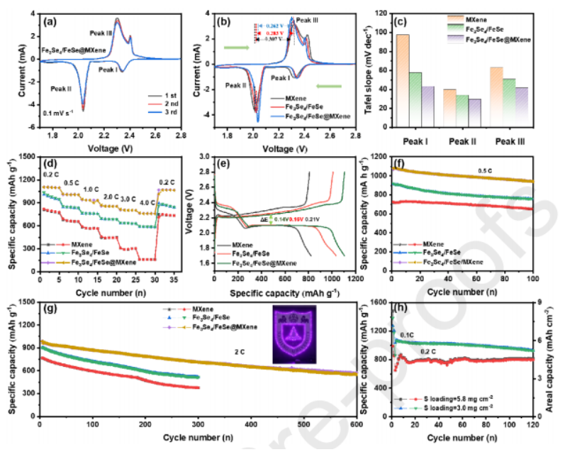 4/FeSe@MXene-PP隔膜提供了高比容量(1104.2 mAh g-1在0.2 C)和杰出的速率容量(758.8 mAh g
