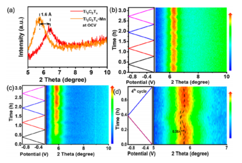 x−Mn電極的第四循環(huán)原位x射線衍射研究。