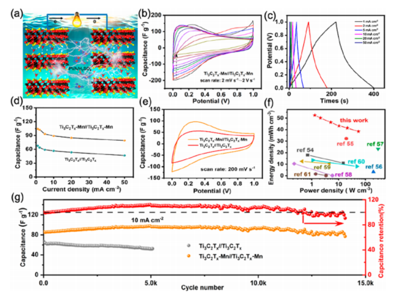 −3。我們認(rèn)為,該工作為后期MXene層間距的調(diào)控和多孔結(jié)構(gòu)的設(shè)計(jì)提供了思路,可廣泛應(yīng)用于下一代高能密度和功率密度的實(shí)際應(yīng)用中。