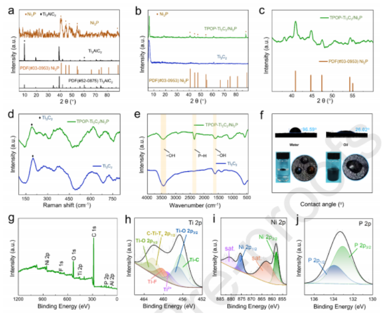 2P樣品,(h) Ti 2p, (i) Ni2p和(j) P 2p的高分辨率XPS曲線。
