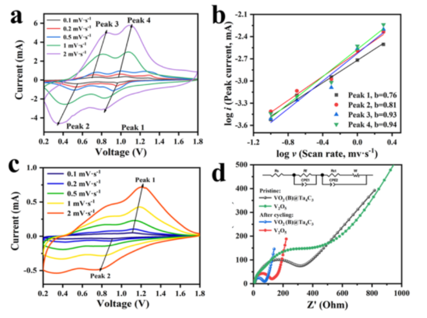 3MXene的加入使V-MOF從凝聚堆積中解放出來,使其顯示出額外的活性位點(diǎn)。更重要的是,Ta