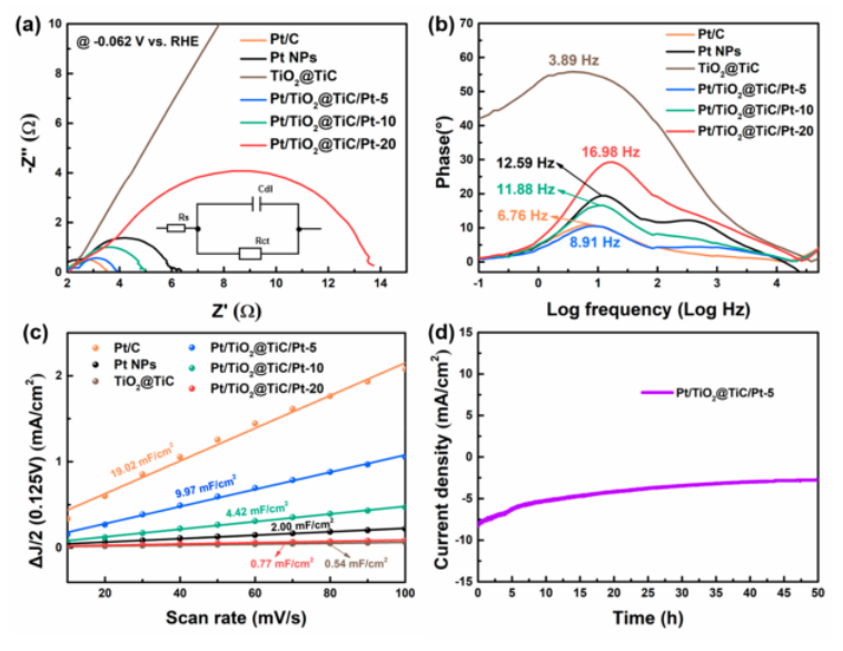 2@TiC/Pt-5 min樣品具有出色的電化學(xué)和光電化學(xué)性能。Pt/TiO